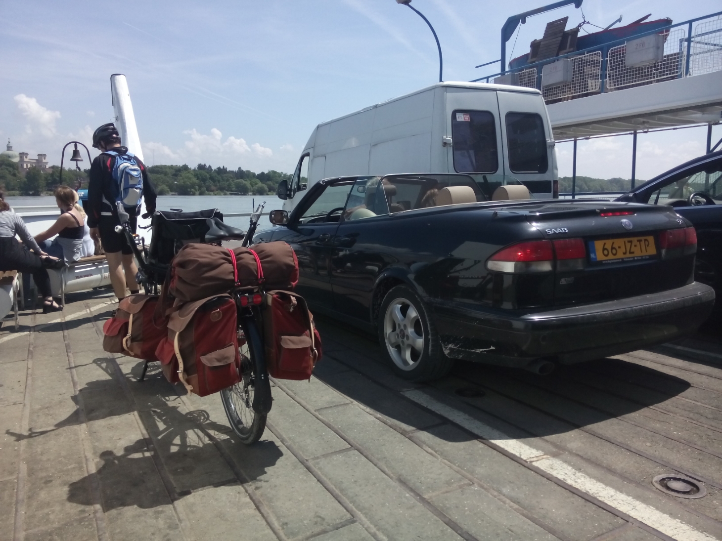 On s’éloigne de Budapest, et les choses prennent un cours très agréable. Tout d’abord, le soleil pointe son nez pour la première fois, avec la chaleur qui va avec. On se tartine de crême solaire avant le départ.
