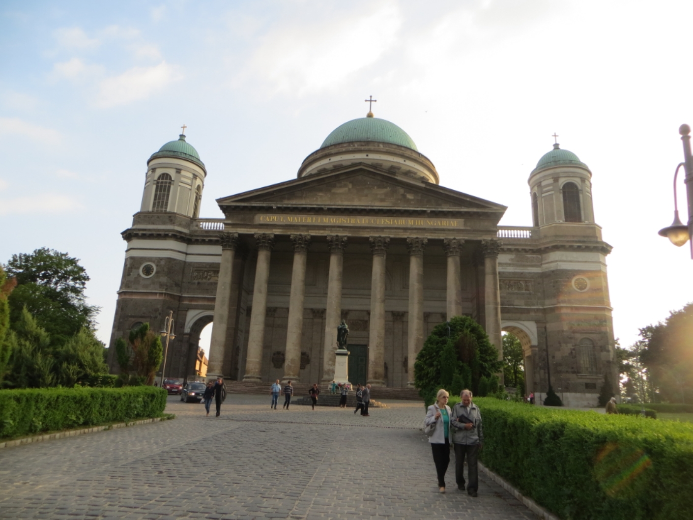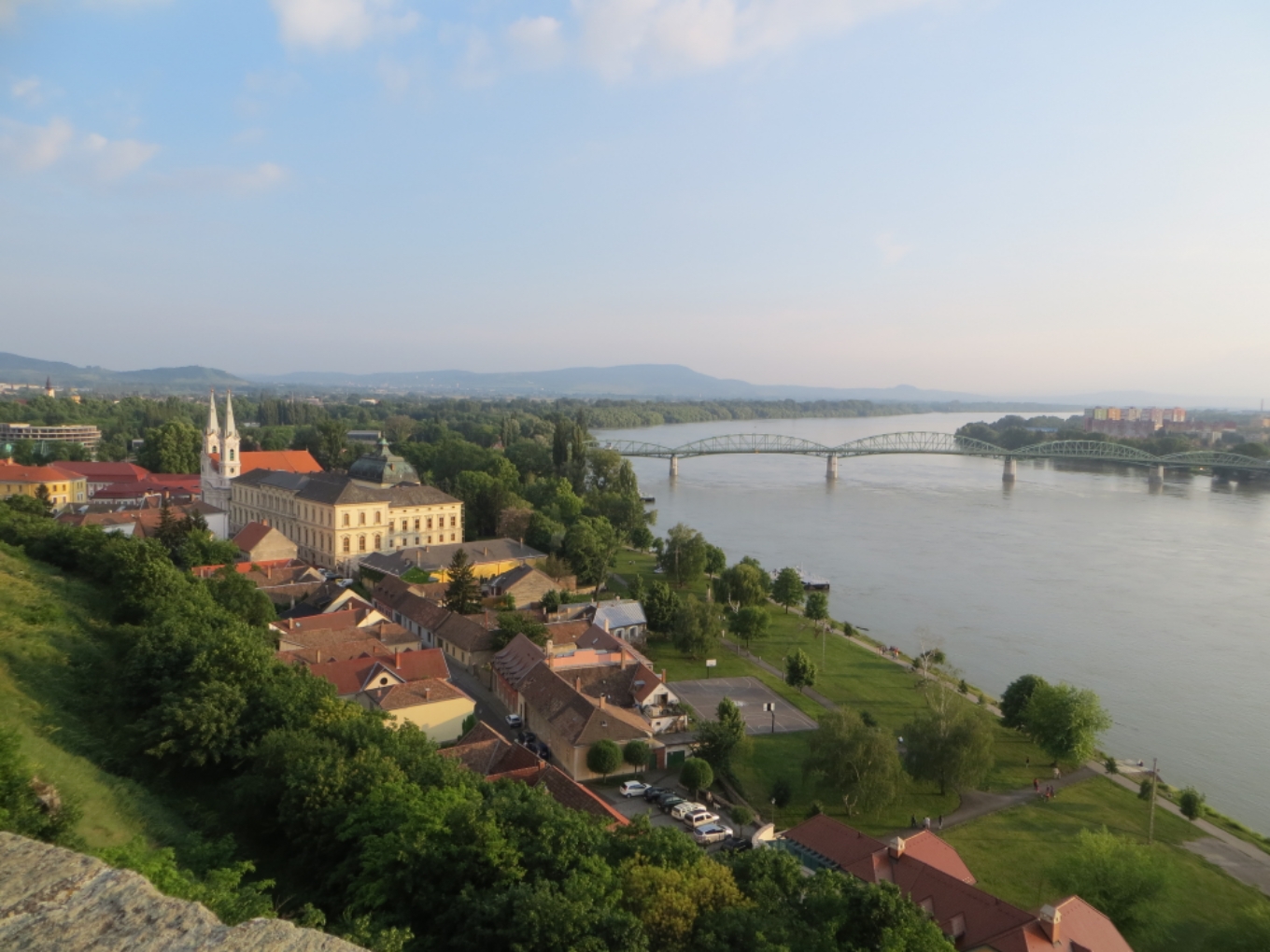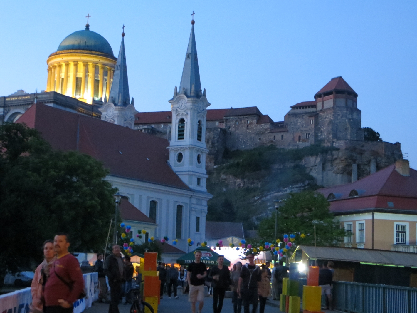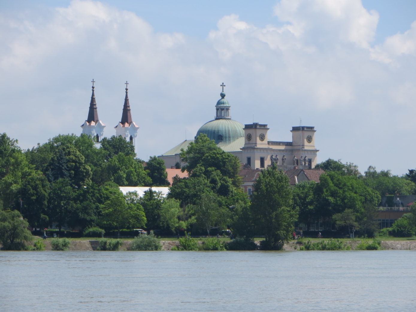 De l’autre côté de la rive, c’est moins bien (on est en grande partie sur la route, assez fréquentée, et dont les bords sont en mauvais état), mais nous arrivons très contents de cette journée à Esztergom, capitale de l’église catholique de Hongrie (la Rome hongroise). On y trouve une pention pas trop difficilement, et nous profitons d’être arrivés assez tôt (vers 16 heures) pour faire du tourisme dans cette ville. En face, c’est déjà la Slovaquie.