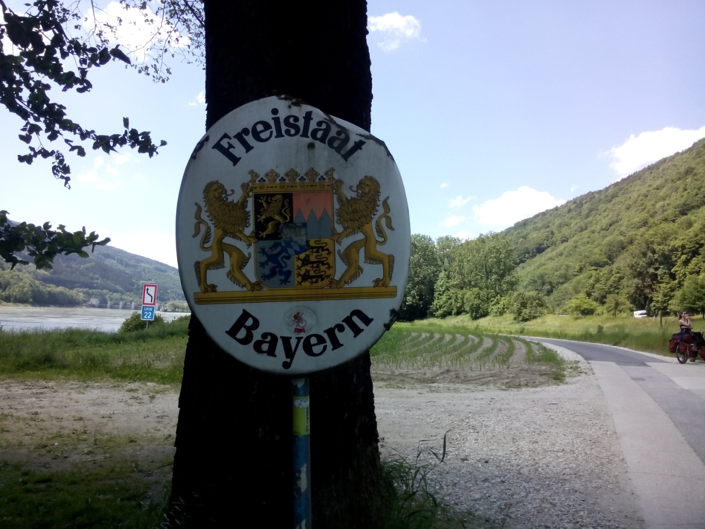 Après cette pause, un passage longe l’autoroute. On se rapproche de Deggendorf, sans s’y arrêter. La suite est très bien. Le guide signalait un passage sur route, mais en réalité une nouvelle piste permet de pédaler sur du stabilisé. On arrive à destination vers 16h15. Il a fait chaud. Un peu trop parfois. Le soir, il n’y a rien à manger sur place. Le petit bar avec un barbecue fermait à 18 heures. Nous pédalons donc vers le village à côté, et dînons tranquillement là-bas. C’était un petit restaurant, servant également de bar du coin. Quelques habitués sont arrivés en vélo, ils avaient à peine le temps d’accrocher le vélo que leurs bières étaient déjà à les attendre sur la table. L’un d’entre eux est resté complètement bloqué à la vision du tandem, et cela lui redonnait un peu le sourire. Il s’est levé pour nous voir partir, tellement qu’il était interessé par le fonctionnement. Il n’avait probablement pas osé nous aborder.