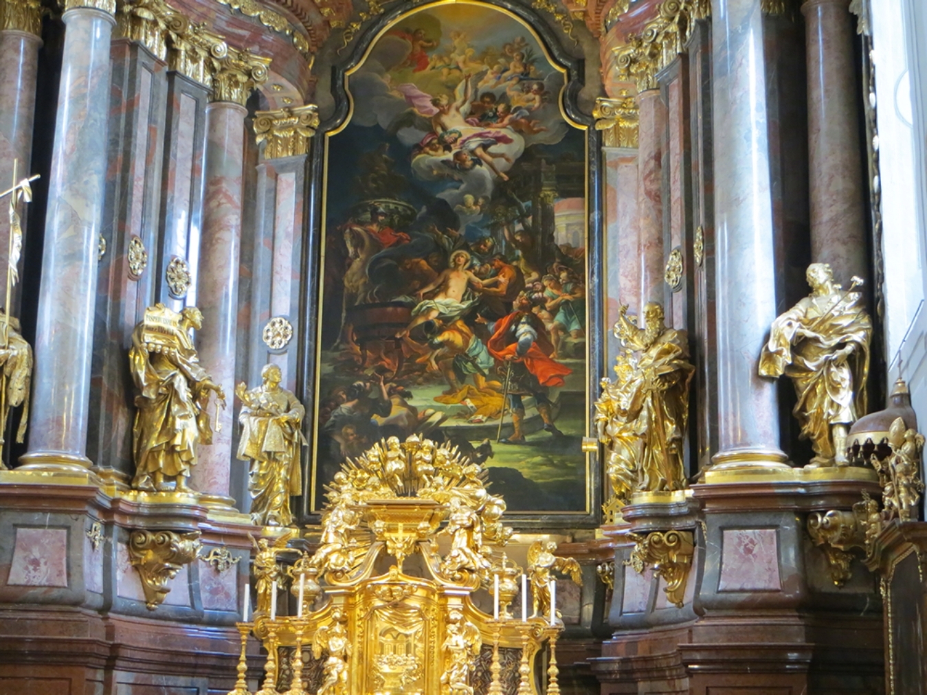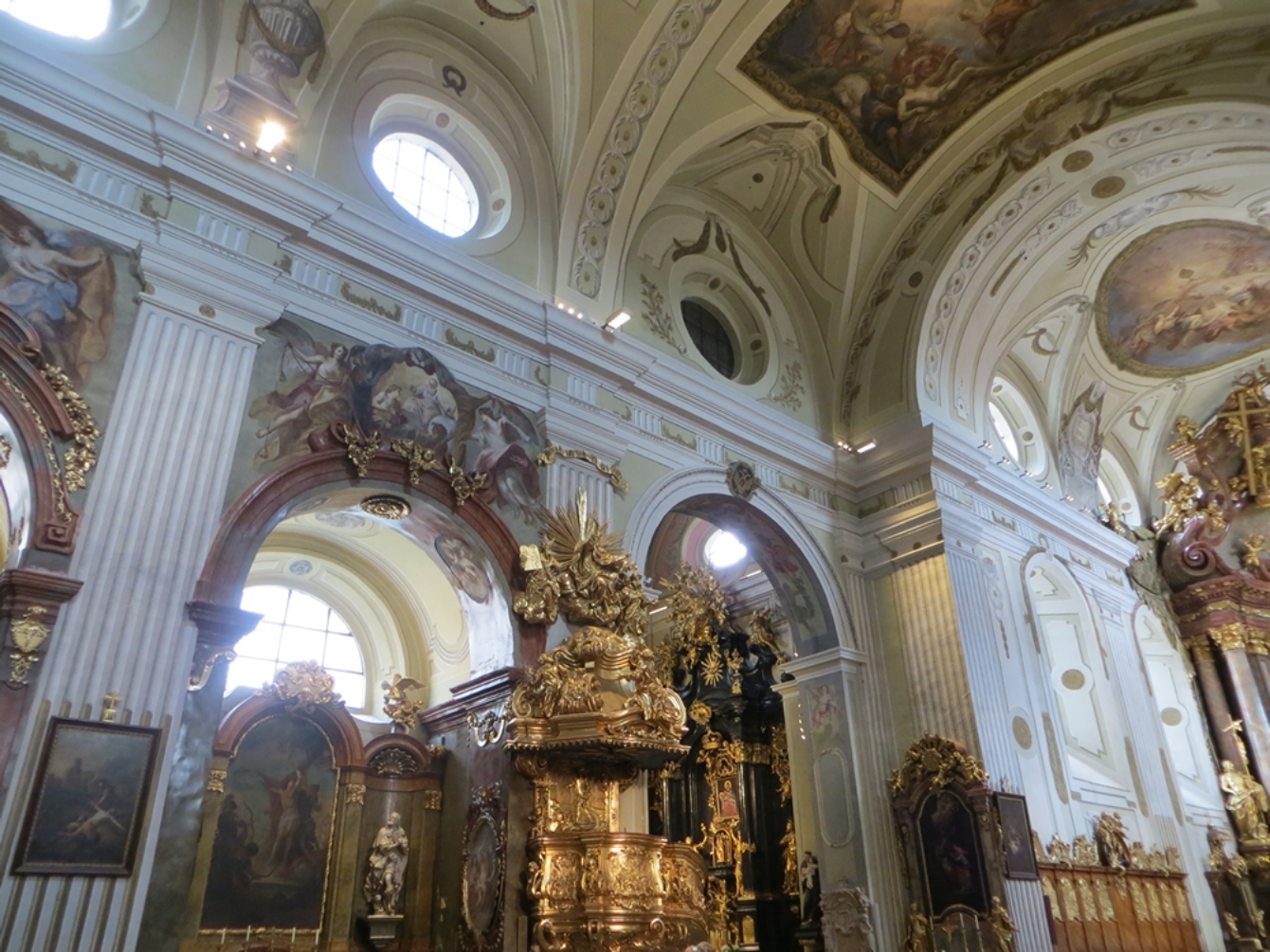 Le matin, nous visitons l’abbaye de Melk. Elle est d’un style baroque parfait (extérieur et intérieur), ce qui est étonnant pour un bâtiment de cette taille. L’abbaye est toujours en fonction, avec une trentaine de moines de l’ordre des bénédictins. Ils gèrent en particulier un lycée de 800 élèves. Florent était un peu surpris par la tonalité évangélisatrice de l’exposition, ce qui m’a moins étonnée puisque l’abbaye est toujours en fonction. Et puis ils ont une relique de la vraie croix !